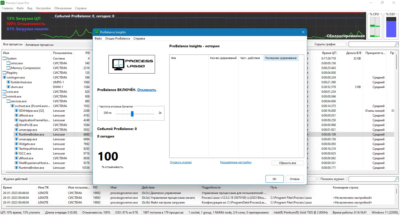 Технология ProBalance адаптивно регулирует приоритеты, предотвращая блокировку пользовательского интерфейса из-за перегрузки ЦП.