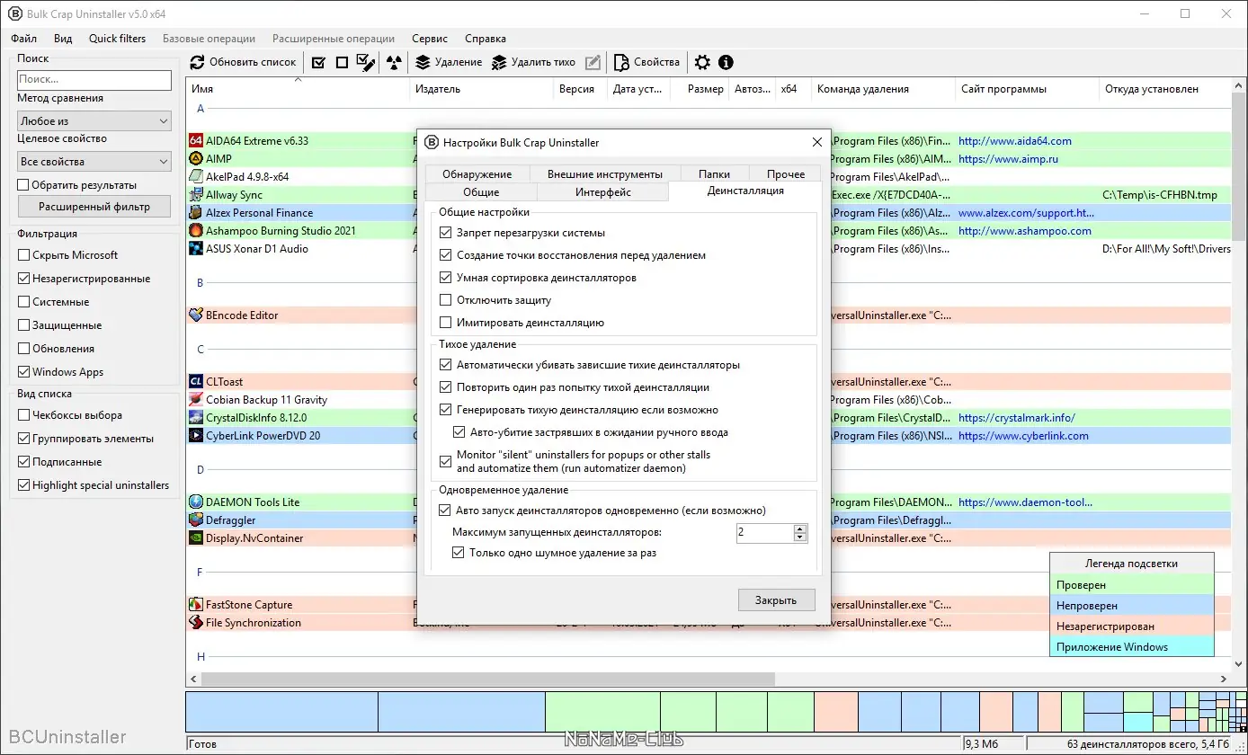 Bulk Crap Uninstaller — это мощная утилита для полного удаления программ с компьютера, которая очищает систему от остатков, реестровых записей и временных файлов. Программа поддерживает пакетную деинсталляцию, работает в тихом режиме и предлагает инструменты для управления автозагрузкой и фильтрации установленных компонентов. Её можно использовать как в установленном, так и в portable варианте, что делает её удобной для переноски на флешке. Утилита особенно полезна при подготовке системы к чистой переустановке или при оптимизации работы ПК.