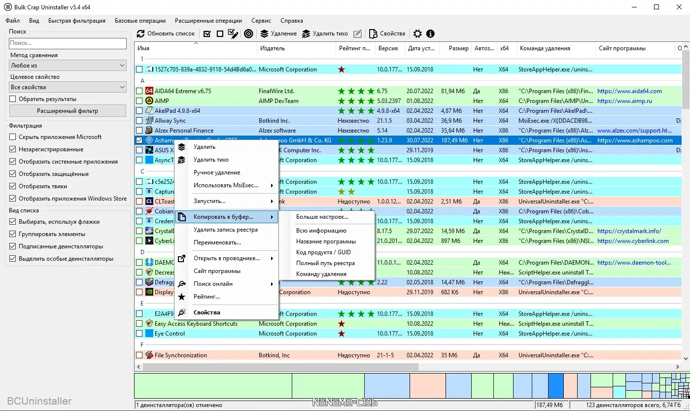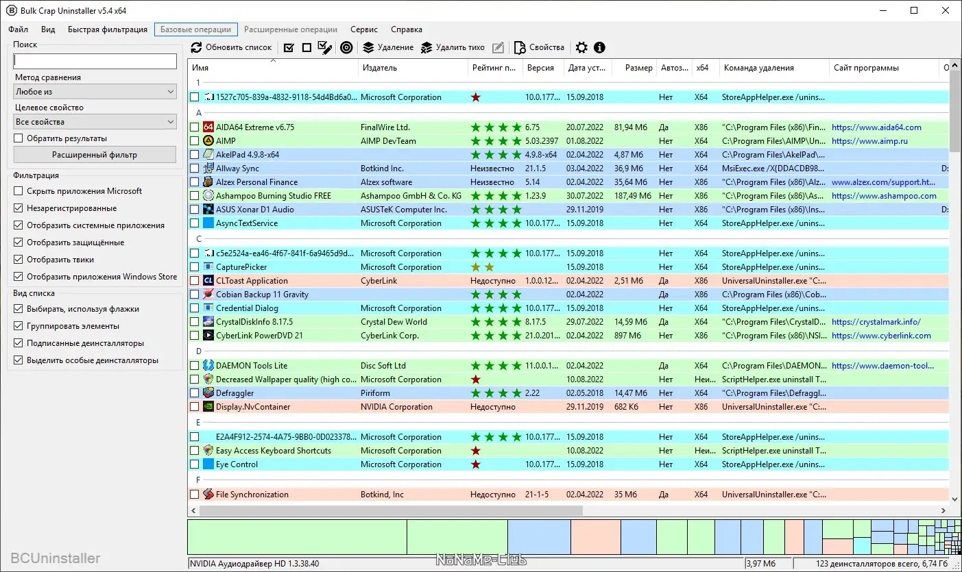 - Позволяет удалять сразу несколько программ в пакетном режиме, экономя время при массовой очистке системы.