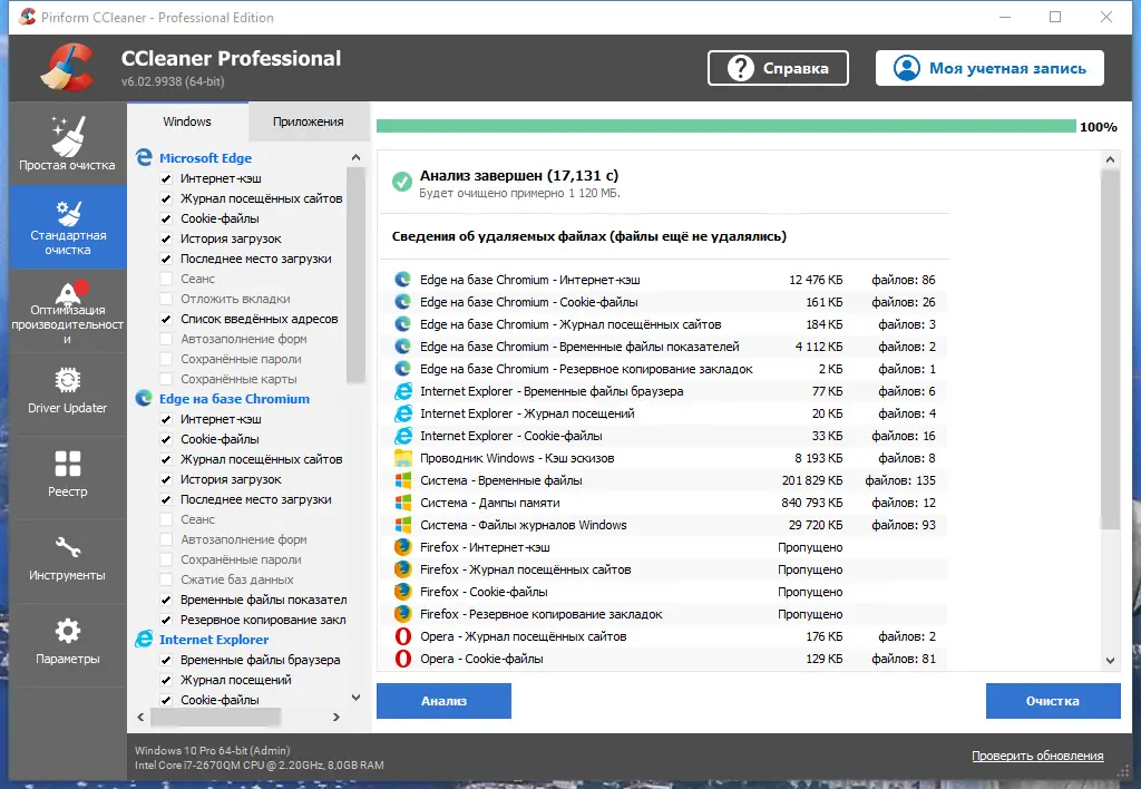 Работа с CCleaner