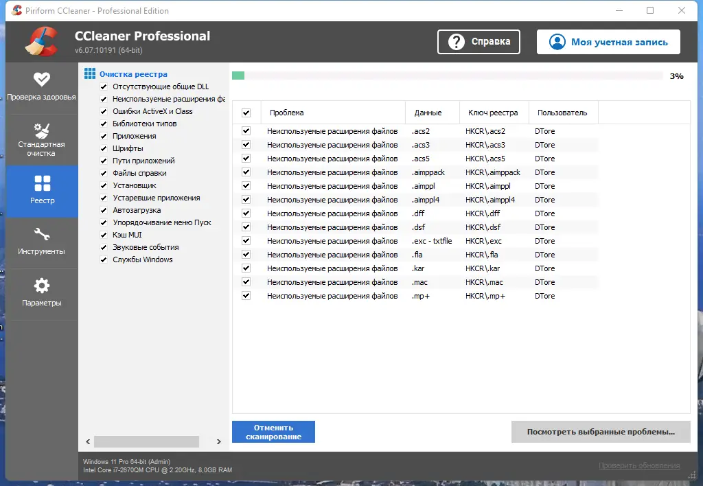 Работа с CCleaner