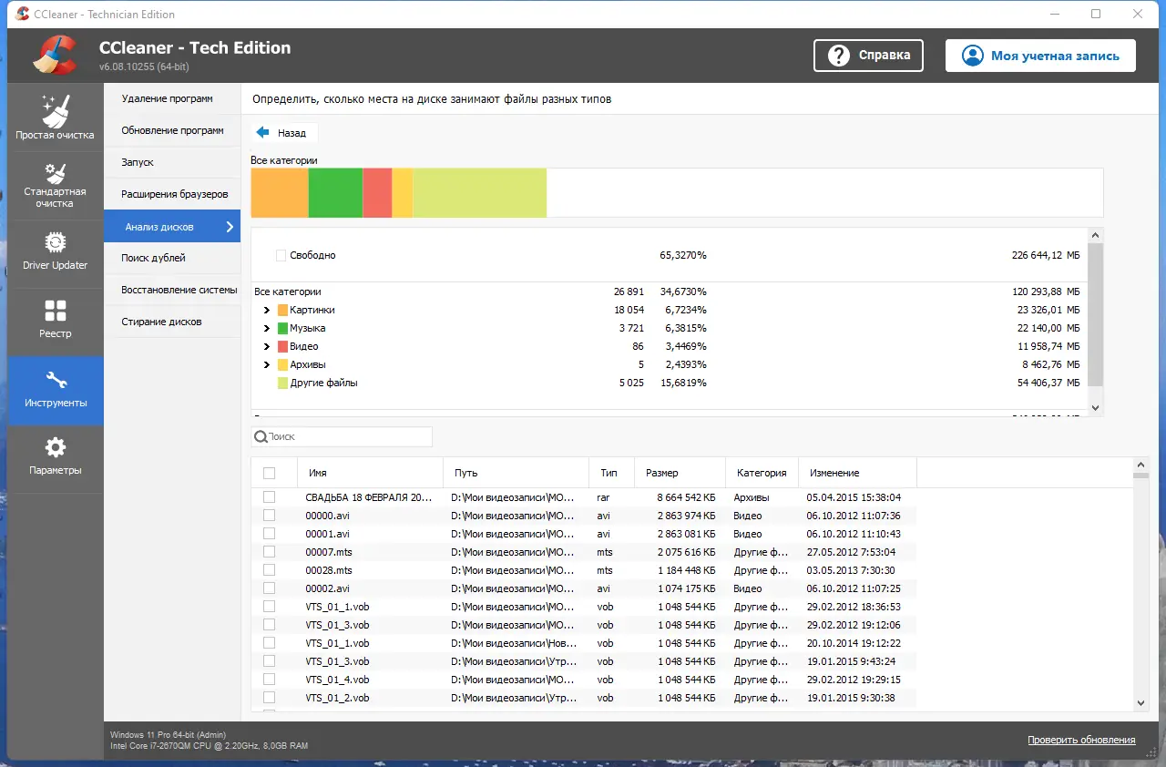 - Эффективная очистка диска от мусорных файлов и освобождение места.