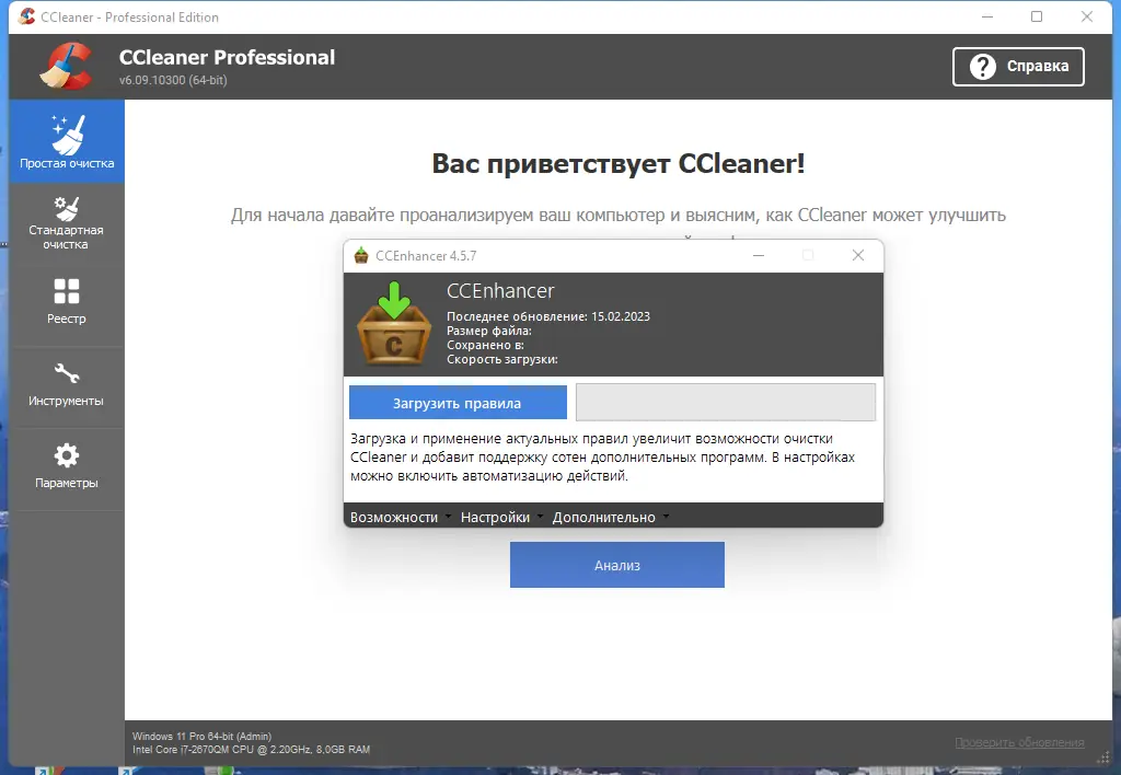 CCleaner — это мощная утилита для очистки системы от временных файлов, следов интернет-активности и ненужных записей в реестре Windows. Программа помогает освободить место на диске, ускорить работу компьютера и повысить его стабильность. Поддержка множества приложений и гибкие настройки делают её удобной как для новичков, так и для опытных пользователей. Утилита совместима с различными версиями Windows и предлагает широкие возможности для оптимизации системы. Можно установить CCleaner или использовать портативную версию без установки.