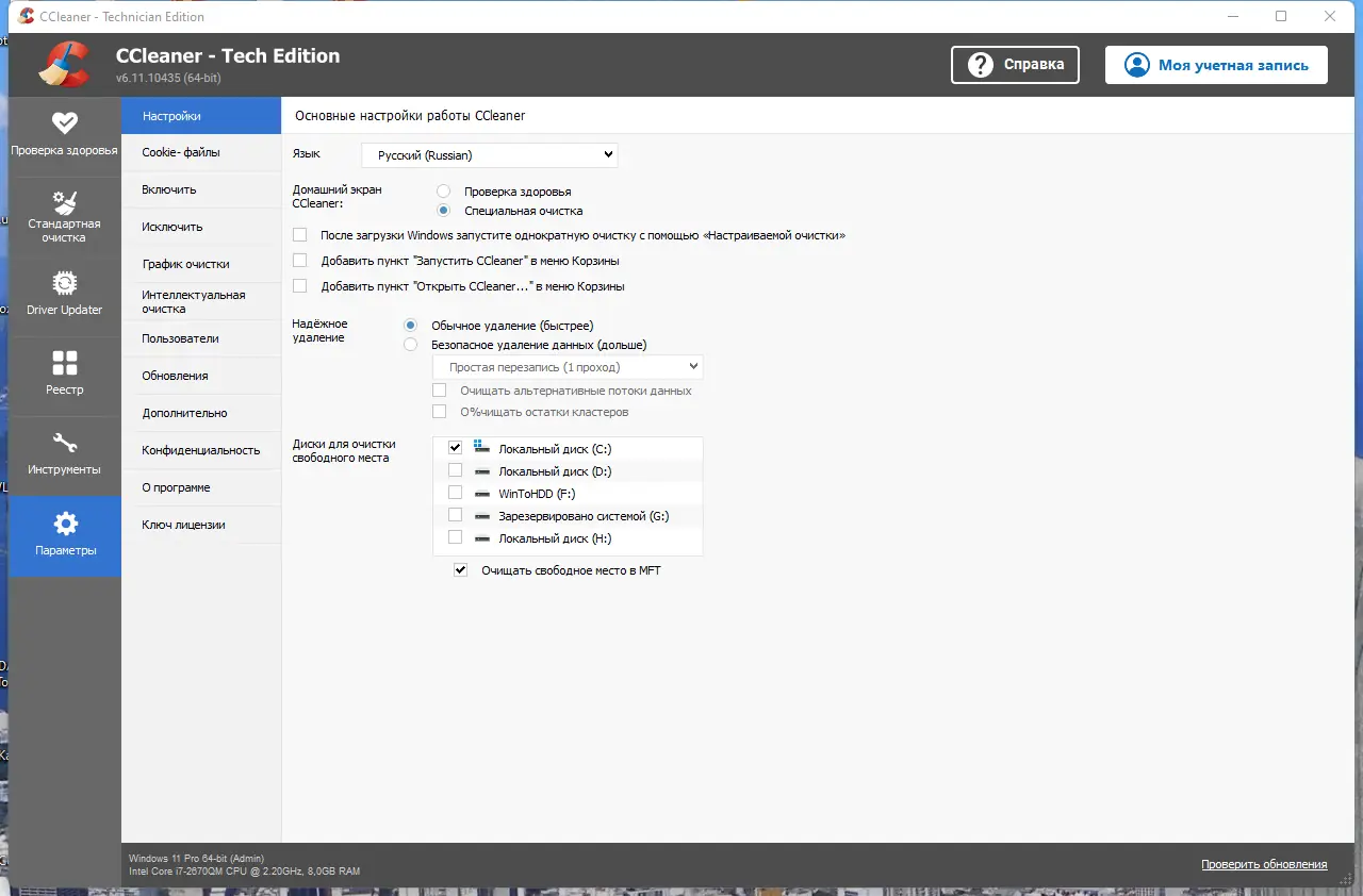 Работа с CCleaner