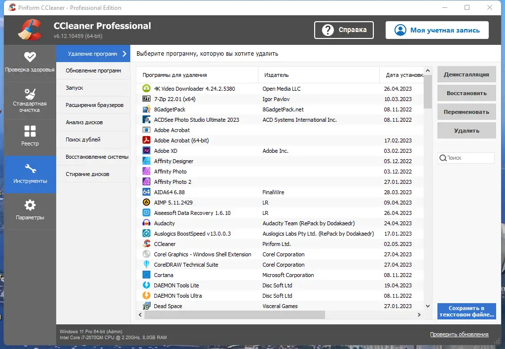 CCleaner — это мощная утилита для очистки системы от временных файлов, следов интернет-активности и ненужных записей в реестре. Программа помогает освободить место на диске, ускорить работу компьютера и повысить его стабильность. Поддержка множества приложений и гибкие настройки делают её незаменимым инструментом для оптимизации Windows.