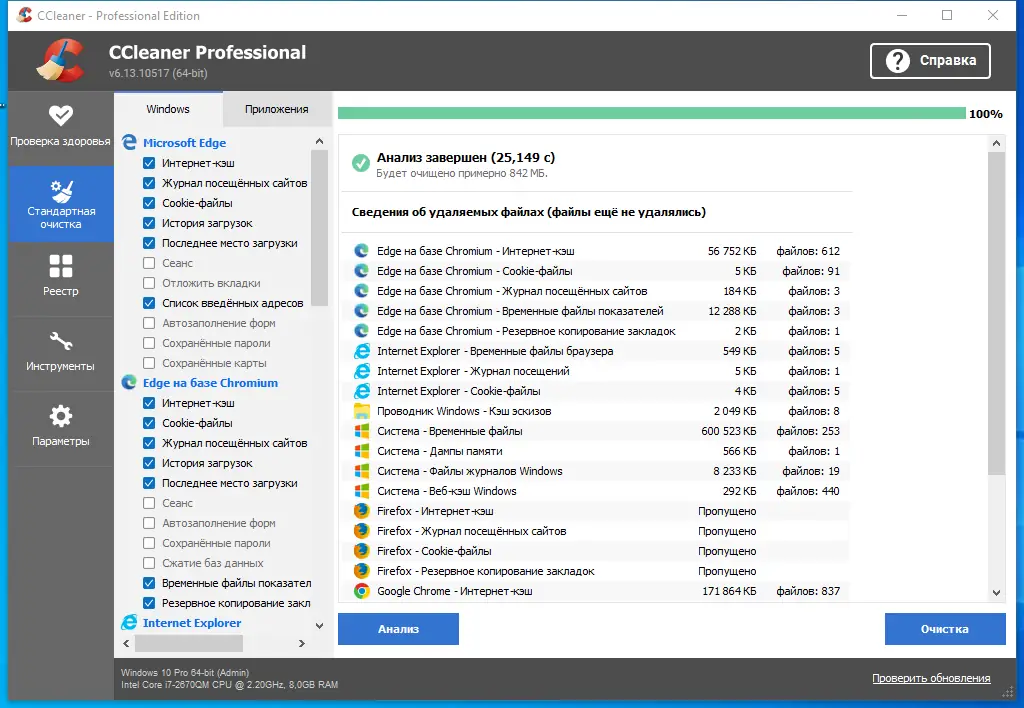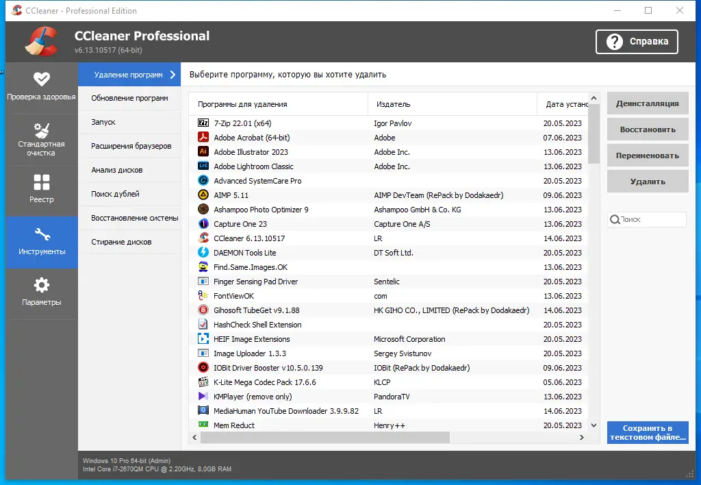 Работа с CCleaner