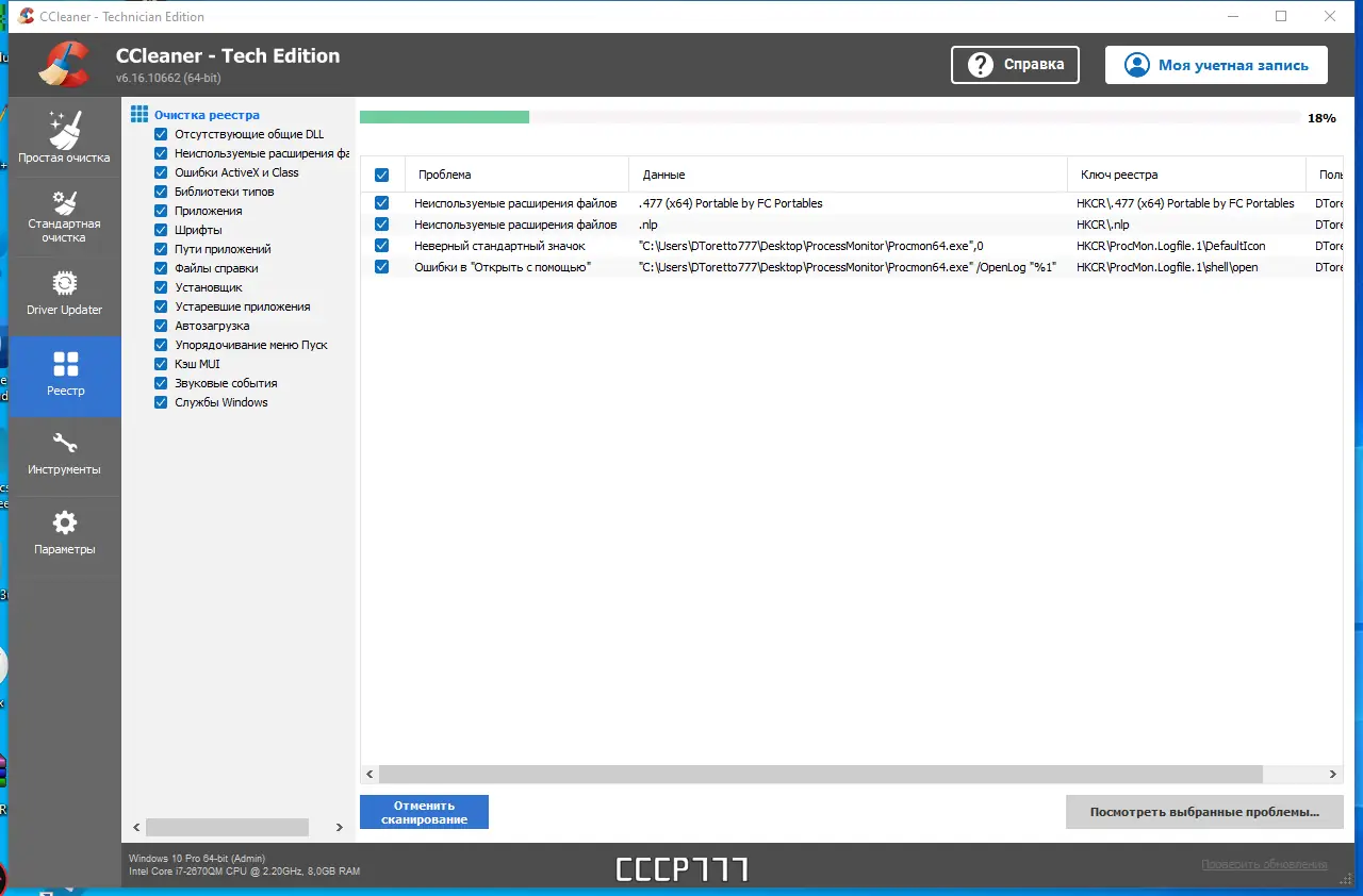 - Позволяет проводить анализ и чистку реестра Windows, исправляя ошибки, связанные с несуществующими путями, устаревшими DLL-библиотеками и нерабочими ярлыками.