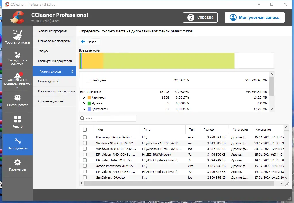 Работа с CCleaner