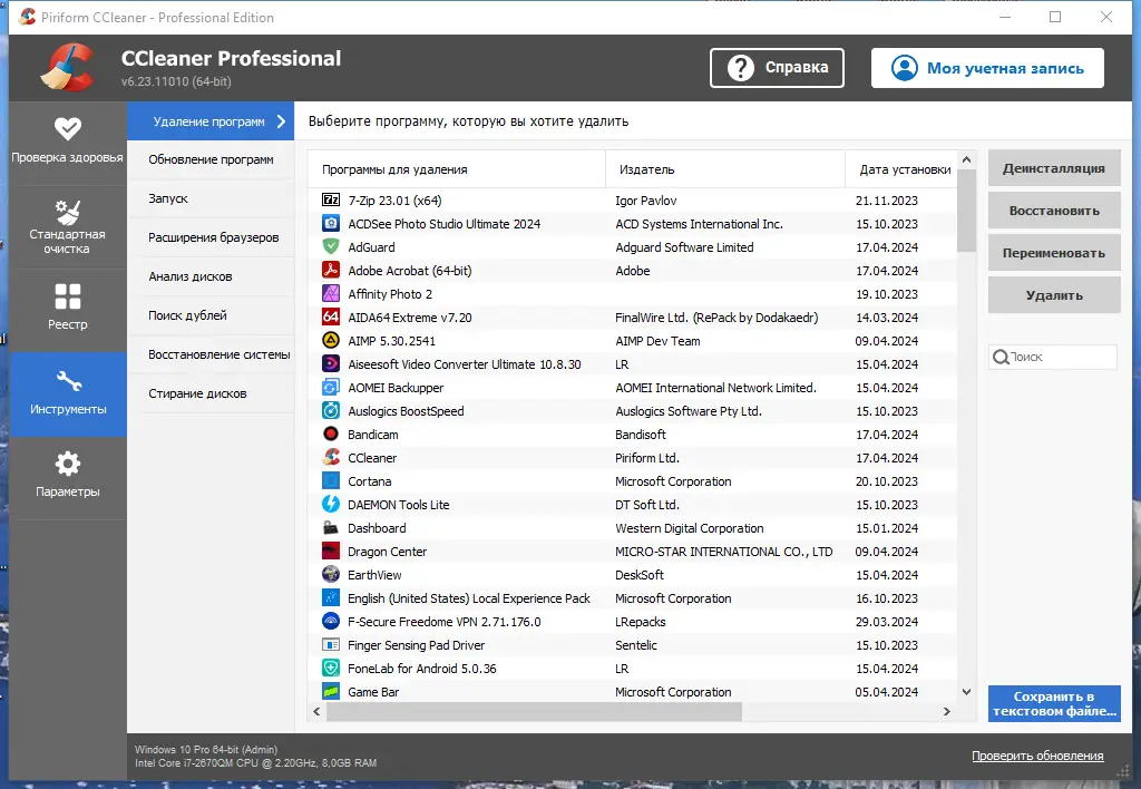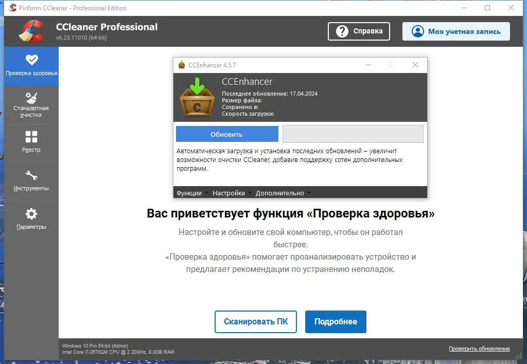 Работа с CCleaner