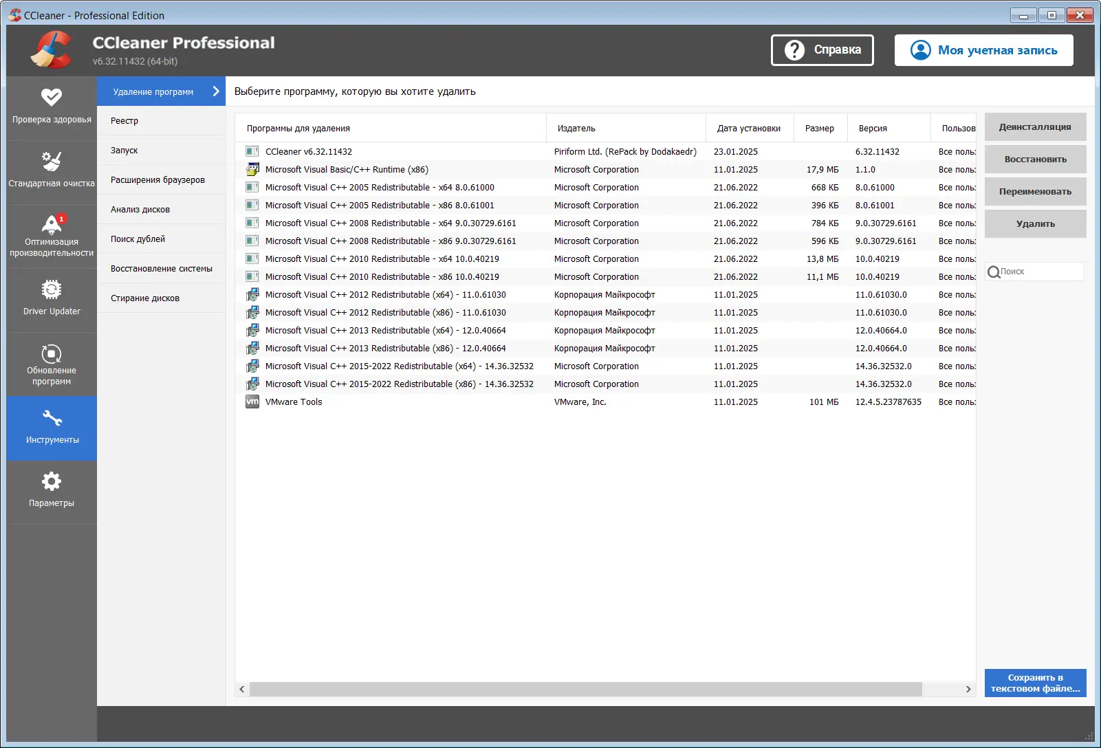 Работа с CCleaner