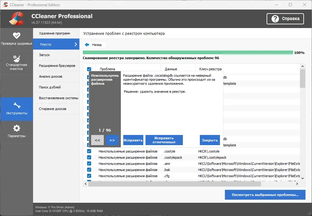 CCleaner — это мощная система для очистки и оптимизации компьютера, помогающая освободить место на диске, ускорить работу системы и повысить её стабильность. Программа эффективно удаляет временные файлы, следы активности в браузерах, записи реестра и ненужные данные сторонних приложений. Регулярное использование инструмента способствует поддержанию ПК в идеальном состоянии.