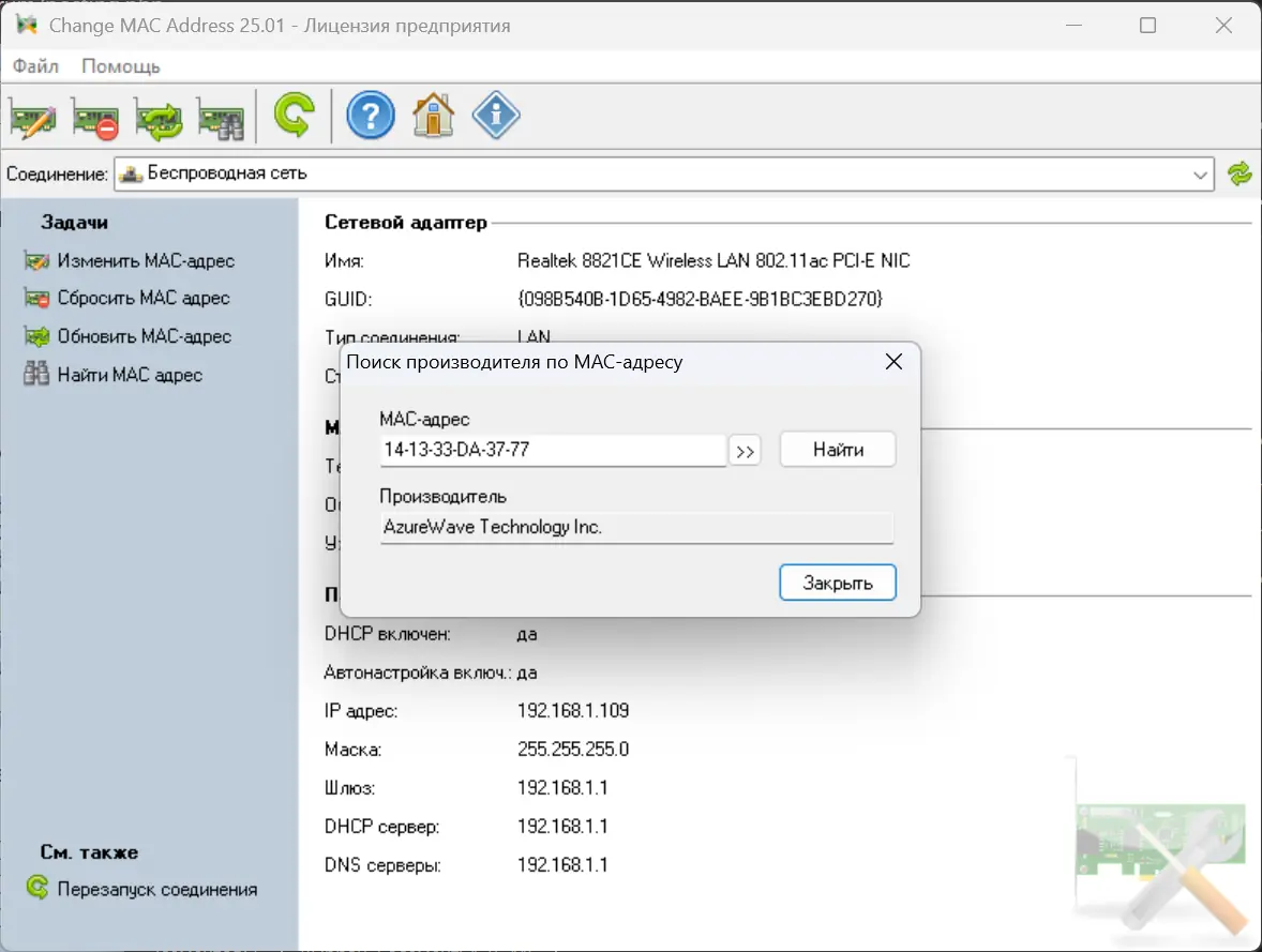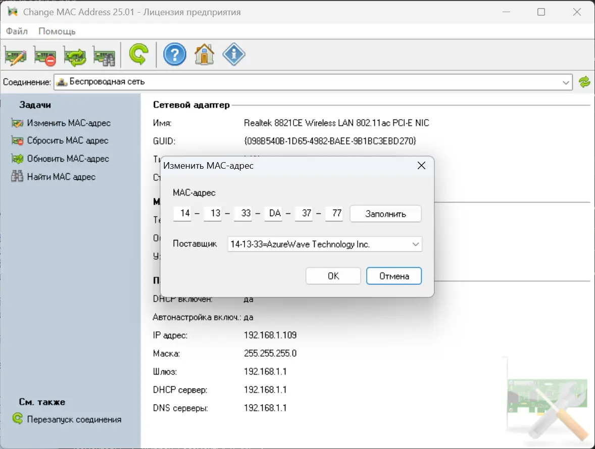 Работа с Change MAC Address