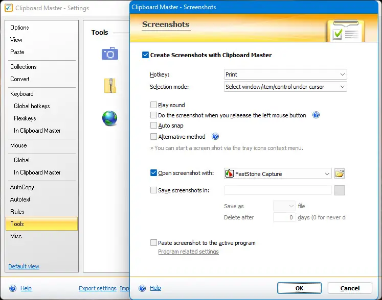 - Автоматическое создание скриншотов и их сохранение в буфер