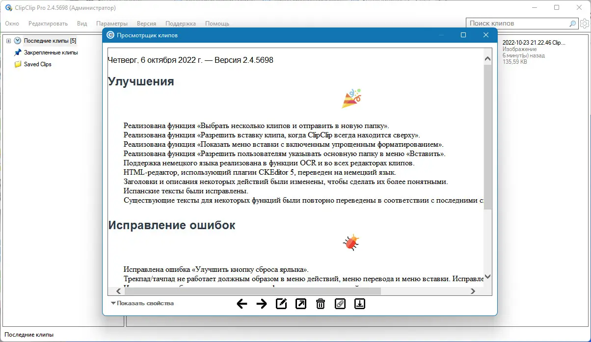 Программа доступна для установки на компьютеры под управлением Windows. Обновления регулярно выпускаются, улучшая стабильность и добавляя новые возможности. Последняя версия включает поддержку немецкого языка в OCR и редакторах, исправление ошибок с сенсорными панелями и улучшения в интерфейсе. Пользователи могут настроить поведение меню вставки, выбирать основную папку и использовать упрощённое форматирование. Внесены изменения в локализацию, исправлены ошибки с перемещением клипов и сбросом горячих клавиш. Для работы с программой не требуется сложная настройка — достаточно установить и начать использовать её в повседневных задачах. Её можно скачать с официального сайта, где также доступны инструкции и поддержка.