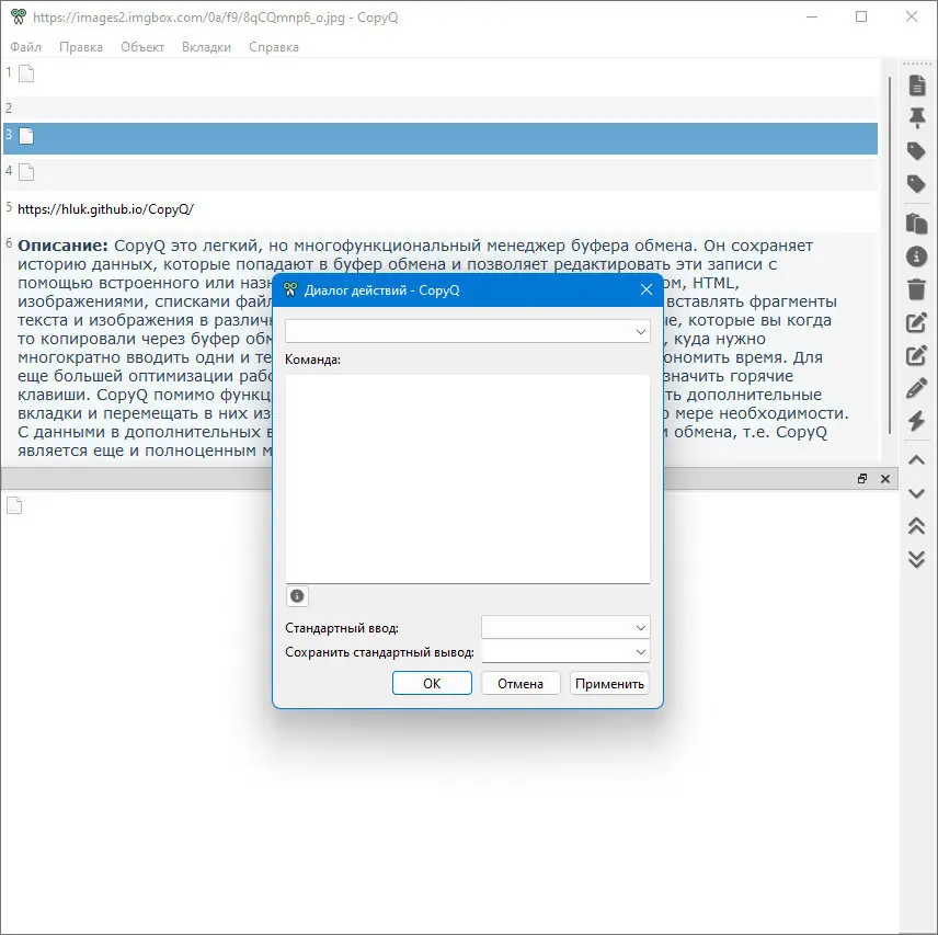 CopyQ сочетает в себе возможности менеджера буфера обмена и системы быстрого доступа к часто используемым данным.