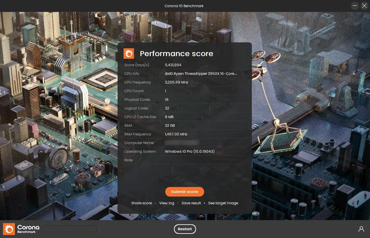 Corona Benchmark — это инструмент для тестирования производительности компьютера, основанный на движке рендеринга Corona 10. Программа позволяет проводить замеры в реальных сценариях визуализации, получать сопоставимые результаты и оценивать эффективность аппаратного обеспечения. Подходит как для обычных пользователей, так и для специалистов, работающих с 3D-графикой и моделированием.