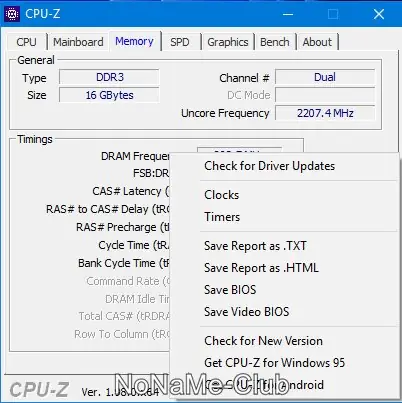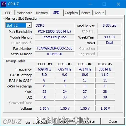 - Показывает объем и тип установленной оперативной памяти с указанием таймингов