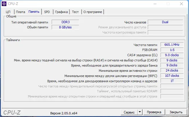 Интерфейс CPU-Z интуитивно понятен и разделён на несколько вкладок: CPU, Caches, Mainboard, Memory, SPD и Graphics. На вкладке CPU отображаются все ключевые параметры процессора, включая модель, семейство, техпроцесс и текущую частоту. Вкладка Memory показывает тип, объём и режим работы оперативной памяти, а SPD позволяет просмотреть данные каждого модуля по отдельности. Вкладка Graphics отражает информацию о подключённых видеокартах, включая модель и частоту GPU. Для запуска теста задержек памяти используется вкладка Bench, где достаточно нажать кнопку «Memory» для начала измерений.