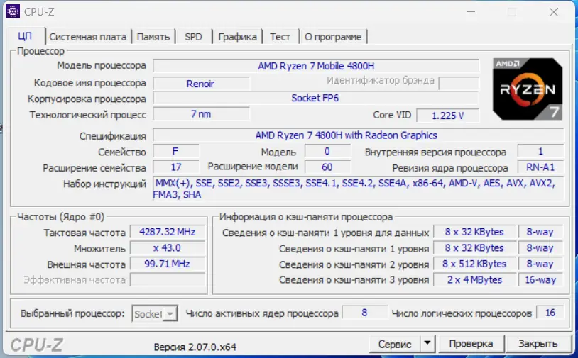 CPU-Z — это бесплатная утилита, предназначенная для получения детальной информации о центральном процессоре, оперативной памяти, материнской плате и других компонентах системы. Программа позволяет точно определить модель процессора, его архитектуру, текущие частоты, множитель, напряжение, а также параметры кэш-памяти и поддерживаемые наборы инструкций. Информация отображается в реальном времени и не требует перезагрузки компьютера.