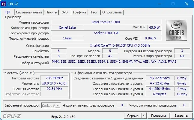 Работа с CPU-Z
