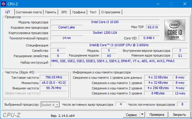 - Определяет точную модель и архитектуру процессора, включая ревизию ядра и степпинг
