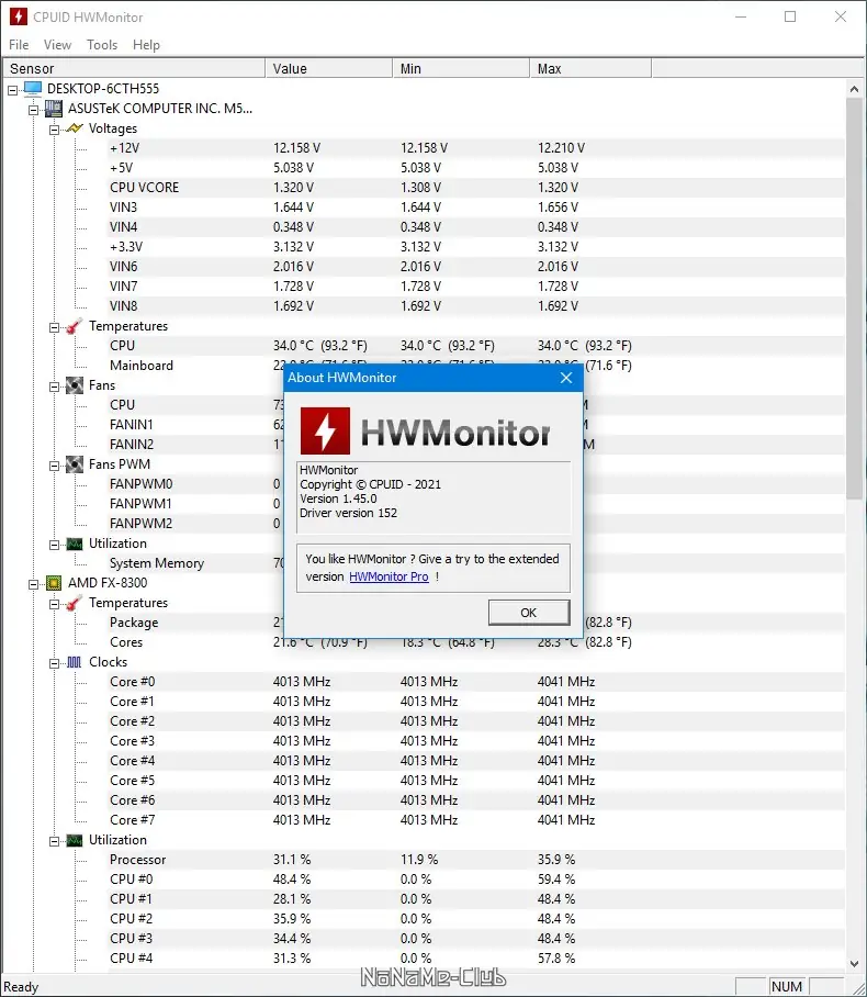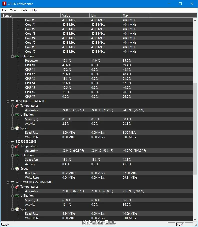Работа с CPUID HWMonitor