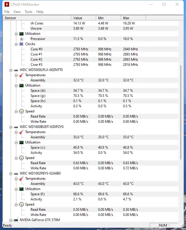Использование CPUID HWMonitor не требует специальных знаний. После запуска приложение автоматически определяет доступные датчики и выводит их показания в виде иерархического списка. Пользователь видит разделы: Mainboard, CPU, GPU, Drives и другие, в каждом из которых отображаются соответствующие значения. Для анализа нагрузки можно запустить ресурсоёмкие приложения или стресс-тесты, одновременно отслеживая динамику показателей. Интерфейс интуитивно понятен: значения обновляются в реальном времени, а при достижении критических отметок их цвет может меняться. Данные можно экспортировать в текстовый формат для последующего анализа. Программа работает в фоне с минимальным потреблением ресурсов, не мешая основной работе системы.