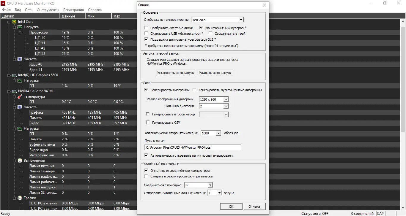 Интерфейс CPUID HWMonitor интуитивно понятен: при запуске отображаются все доступные датчики, сгруппированные по типам компонентов. Пользователь видит текущие показатели, минимальные и максимальные значения за сессию. Для постоянного контроля можно оставить программу работать в трее. Данные обновляются в режиме реального времени, с возможностью настройки частоты опроса датчиков. Экспорт информации осуществляется в текстовый или CSV-файл, что удобно для составления отчётов или анализа динамики изменения температур. Портативная версия позволяет использовать утилиту на любом компьютере без установки, достаточно запустить её с USB-накопителя. Настройки сохраняются автоматически, а при обновлении программы можно подхватить конфигурацию из файла hwmprow.ini, что упрощает развёртывание в корпоративной среде.