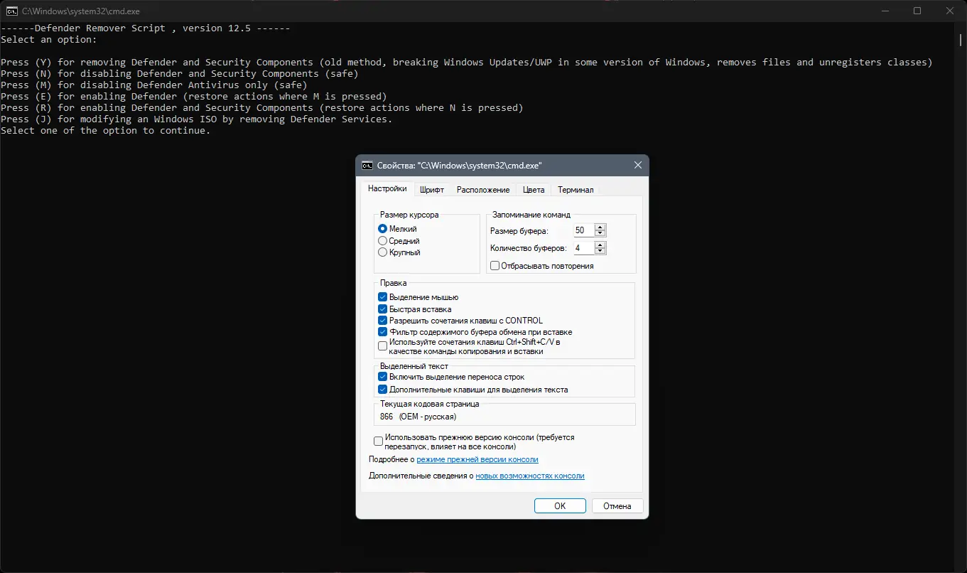 Работа с Defender Remover