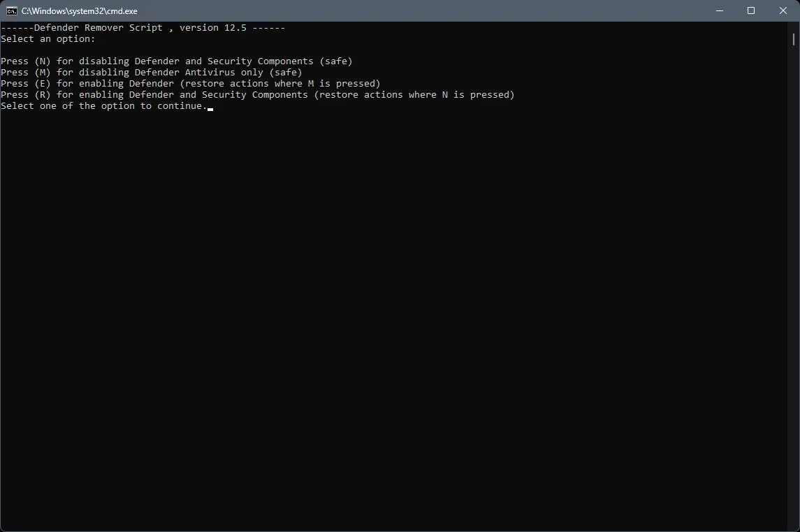 Работа с утилитой максимально упрощена. После запуска от имени администратора открывается консольный интерфейс, где пользователю предлагается выбрать действие с помощью клавиш. Для отключения защиты выбирается соответствующая опция, после чего компьютер перезагружается и применяются изменения. Возврат к исходному состоянию также возможен через главное меню, что делает процесс безопасным и управляемым. Утилита не оставляет следов в автозагрузке и не изменяет систему без подтверждения.