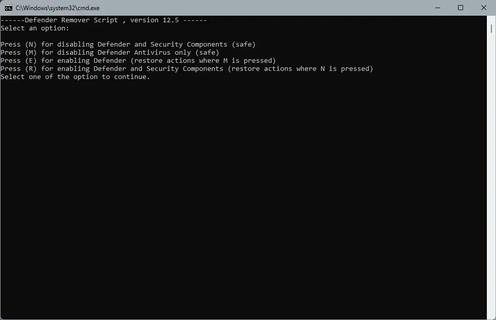 Использование утилиты предельно простое: после запуска от имени администратора пользователь видит текстовое меню с вариантами действий. Каждому действию соответствует определённая буква, ввод которой инициирует процесс отключения. После выбора опции система автоматически перезагрузится и применит изменения на уровне конфигурации. Интерфейс напоминает консольное приложение, что подчёркивает минимализм разработки. Портативная версия позволяет запускать инструмент с флешки без установки, что удобно при обслуживании нескольких компьютеров.