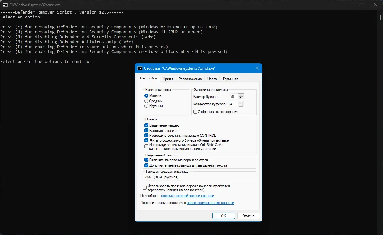 Defender Remover предназначена для полного отключения компонентов безопасности, интегрированных в операционную систему Windows. С её помощью можно деактивировать Microsoft Defender, Windows SmartScreen, службы безопасности Windows и другие связанные процессы. Утилита особенно полезна при настройке системы с уже установленным антивирусом от третьей стороны, когда встроенная защита становится избыточной.