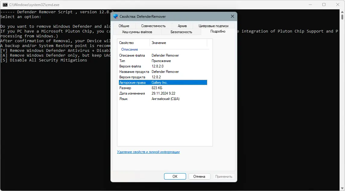 Defender Remover — компактная утилита для быстрого отключения Защитника Windows и сопутствующих служб одним кликом. Программа позволяет временно или полностью деактивировать встроенные механизмы безопасности, включая SmartScreen, VBS, App Guard и другие компоненты, что может быть полезно при использовании сторонних антивирусов.