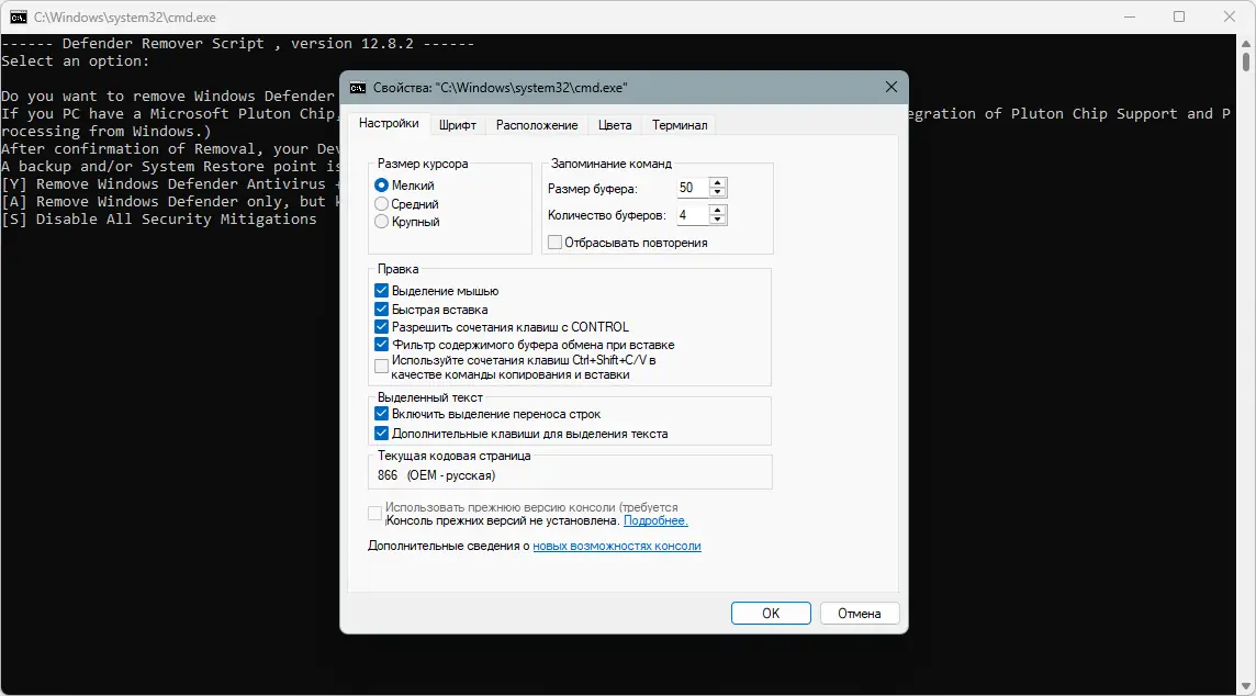 Работа с Defender Remover