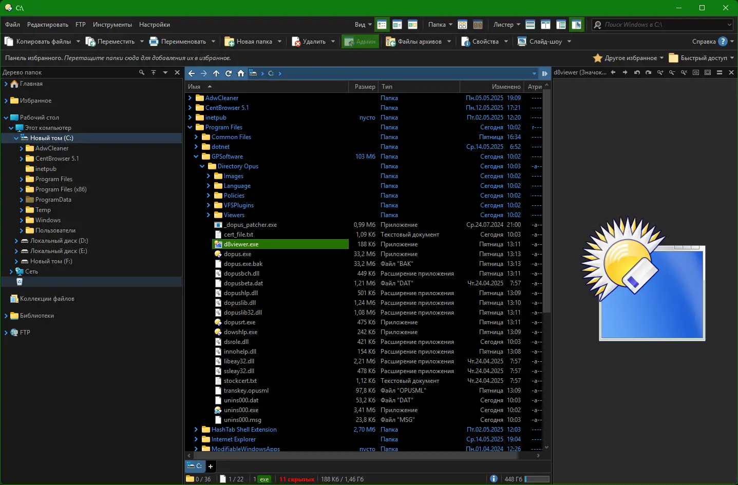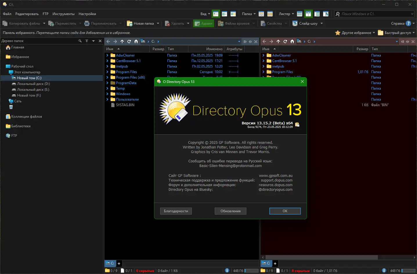 Directory Opus — это продвинутый файловый менеджер, разработанный компанией GPSoftware, который зарекомендовал себя как надежное и гибкое решение для управления файлами в операционных системах Windows. Изначально появившись ещё в эпоху Commodore AMIGA, программа прошла долгий путь развития и сегодня предлагает один из самых полных наборов инструментов среди аналогов. Её интерфейс напоминает классический проводник Windows, но при этом позволяет использовать двухпанельный режим, вкладки, предпросмотр множества форматов и глубокую настройку всех компонентов. Пользователи получают возможность организовать рабочее пространство под свои нужды, ускоряя ежедневные задачи по переносу, сортировке и обработке данных.