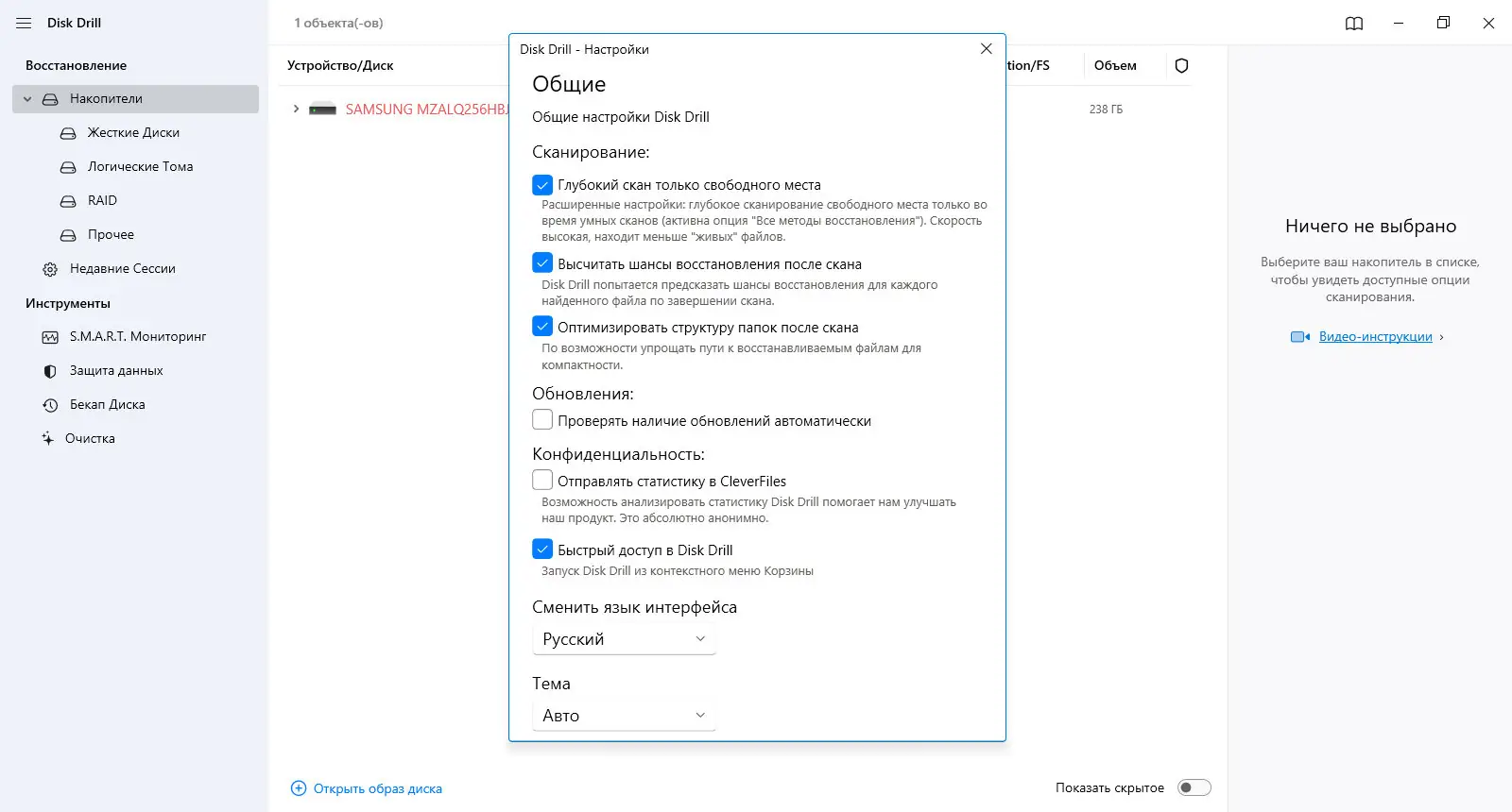 Disk Drill — это надежная программа для восстановления данных, разработанная для пользователей, столкнувшихся с потерей важной информации. Она поддерживает широкий спектр устройств: от внутренних HDD и SSD до внешних накопителей, USB-флешек, карт памяти и даже виртуальных дисков VHD/VHDX. Благодаря совместимости с FAT16, FAT32, exFAT, NTFS, HFS+, APFS, EXT2/3/4 и RAW-дисками, программа охватывает практически все возможные сценарии потери данных. Восстановление файлов происходит с высокой точностью, в том числе после форматирования, сбоев системы или вирусных атак.