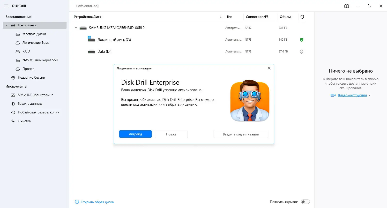 Простое и надежное решение для восстановления данных на Windows — Disk Drill. Программа поддерживает широкий спектр носителей и файловых систем, включая сложные конфигурации вроде RAID и виртуальных дисков. С ее помощью можно быстро найти и вернуть утерянные файлы после случайного удаления, сбоев или вирусных атак.
