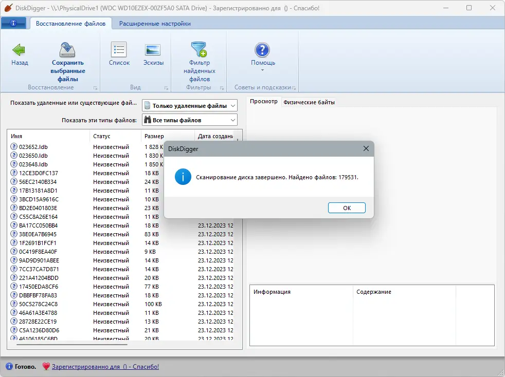 Работа с DiskDigger