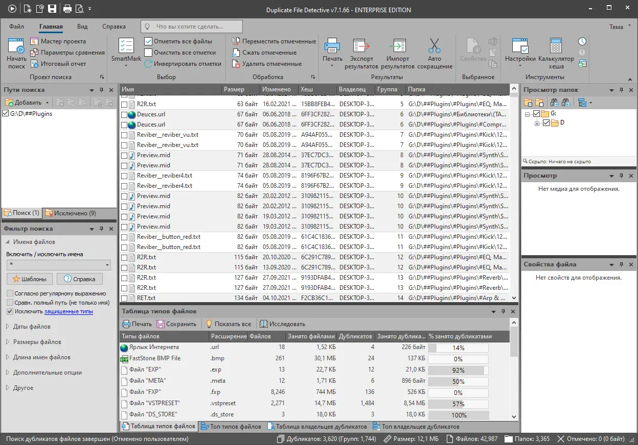 Duplicate File Detective — надежное решение для оптимизации хранения данных и повышения эффективности работы с файлами. Программа подходит как для персонального использования, так и для администрирования корпоративных систем. Её возможности позволяют не только освободить место на диске, но и улучшить процессы резервного копирования, индексации и поиска.