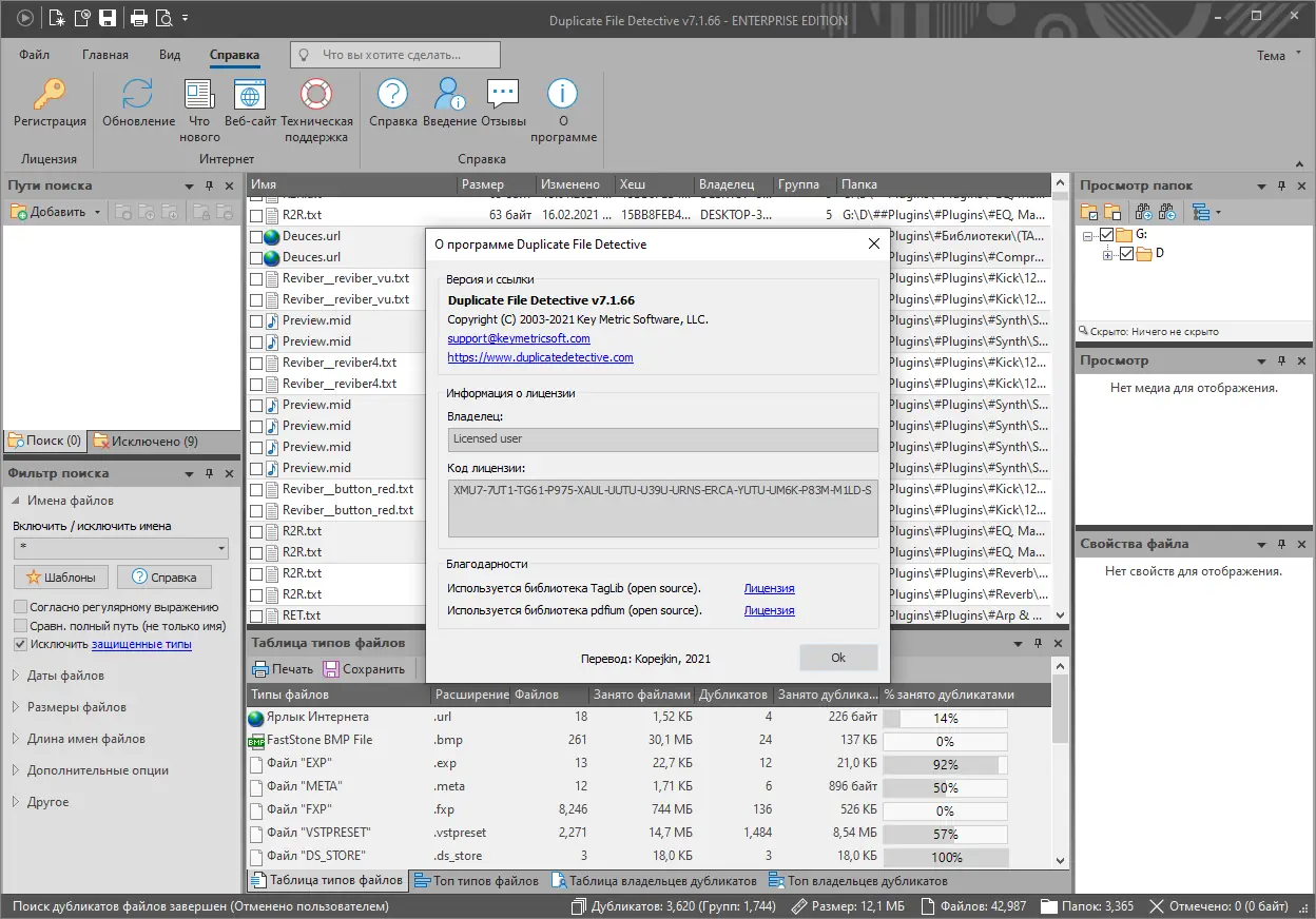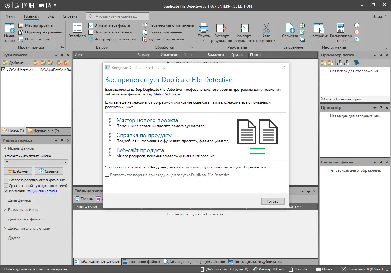 Duplicate File Detective разработана компанией Key Metric Software как специализированное средство для поиска дубликатов файлов на основе анализа их содержимого. В отличие от простых утилит, сравнивающих только имена или размеры, эта программа использует хэширование и побайтовое сравнение, обеспечивая высокую точность. Она поддерживает локальные, съемные и сетевые хранилища, что делает её универсальной для домашнего и корпоративного использования.