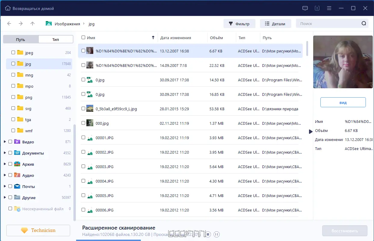 - Возможность предварительного просмотра файлов перед восстановлением.