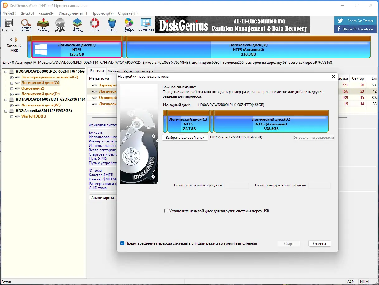 Работа с DiskGenius