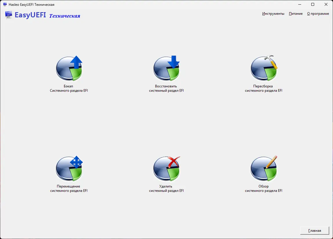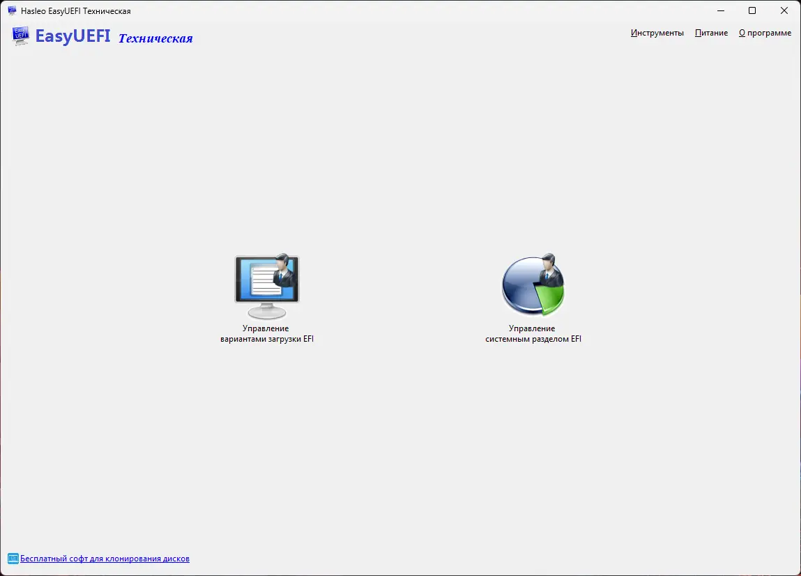 EasyUEFI — это специализированная системная утилита для управления параметрами загрузки в системах, использующих интерфейс EFI/UEFI. Программа позволяет редактировать загрузочное меню Windows, создавать и изменять записи загрузки, управлять системным разделом EFI и восстанавливать загрузчик при сбоях. Благодаря поддержке командной строки и возможности создания аварийного диска на базе Windows PE, инструмент особенно полезен для опытных пользователей и системных администраторов.