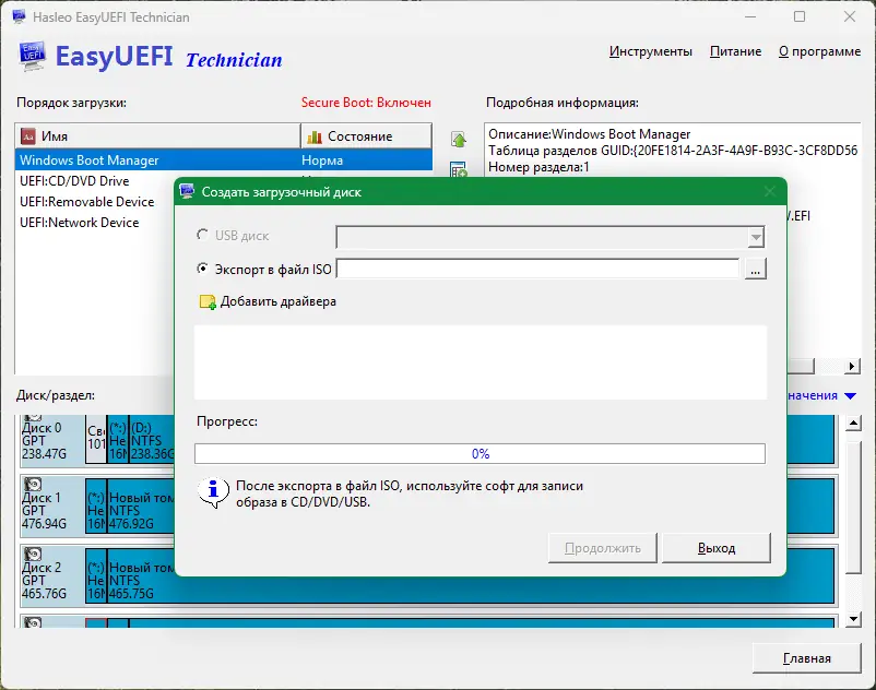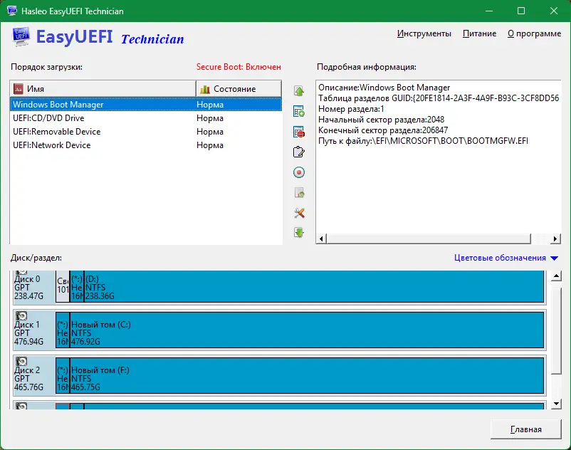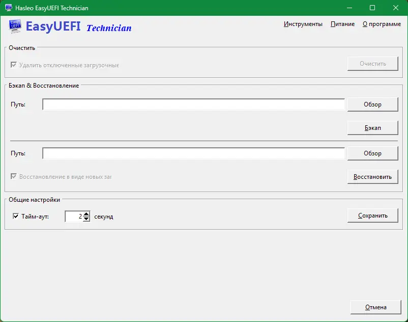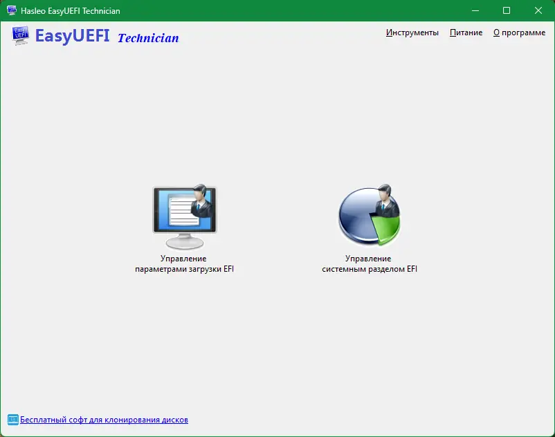 Программа работает исключительно на устройствах с аппаратной поддержкой UEFI и не предназначена для систем с устаревшим BIOS.