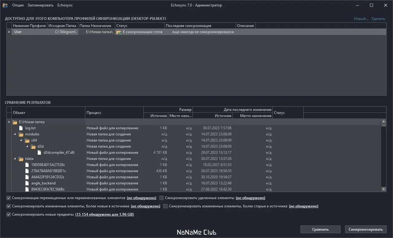 Использование Echosync начинается с создания профиля синхронизации. Пользователь указывает путь к исходной папке и выбирает целевое местоположение, куда будут копироваться данные. Далее настраивается тип синхронизации: можно выбрать реакцию на изменение, удаление, добавление или перемещение файлов. Перед запуском копирования доступна функция сравнения файлов, которая наглядно покажет, какие именно элементы подлежат обновлению. После настройки профиль сохраняется, и его можно запускать в любой момент или объединять с другими для одновременного выполнения. Программа поддерживает запуск из командной строки, что позволяет интегрировать её в скрипты и автоматизировать регулярные операции резервного копирования.