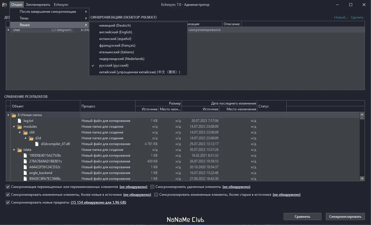 - Автоматическое определение переименованных и перемещённых файлов, что исключает их повторное копирование и ускоряет процесс.