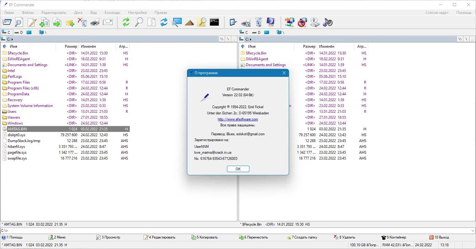 EF Commander — это мощный двухпанельный файловый менеджер с широкими возможностями для управления файлами и папками. Программа совмещает в себе функции архиватора, медиаплеера, редактора, FTP-клиента и инструментов для записи дисков, оставаясь при этом легкой и удобной в использовании. Подходит как для повседневных задач, так и для профессионального администрирования файловой системы.