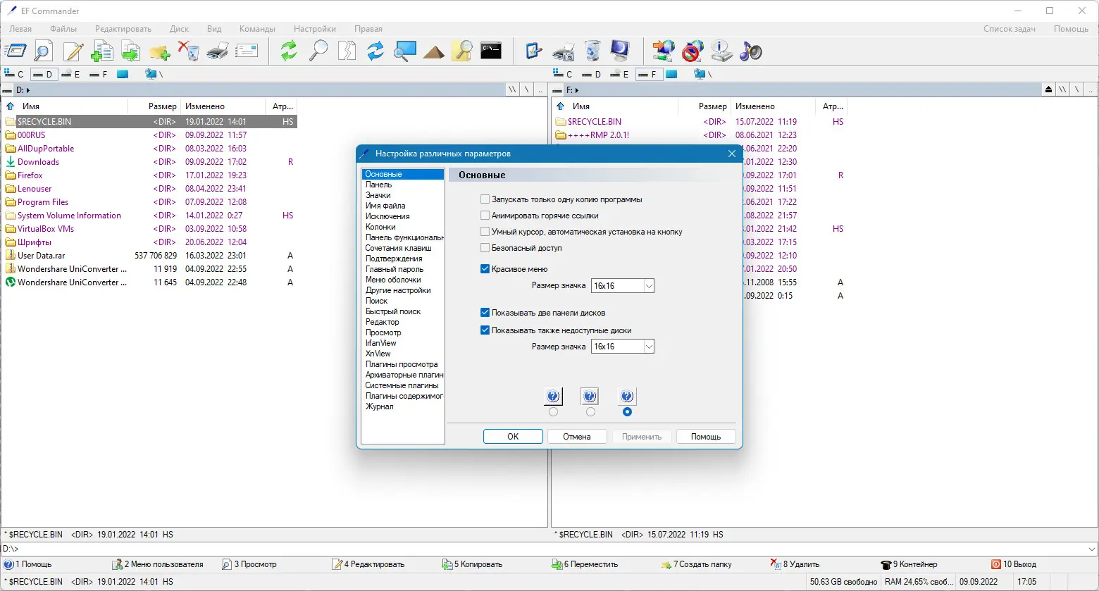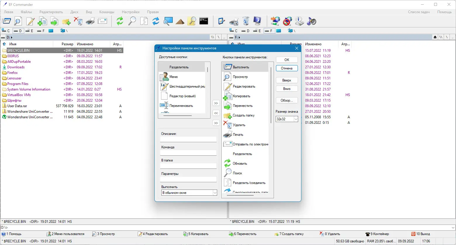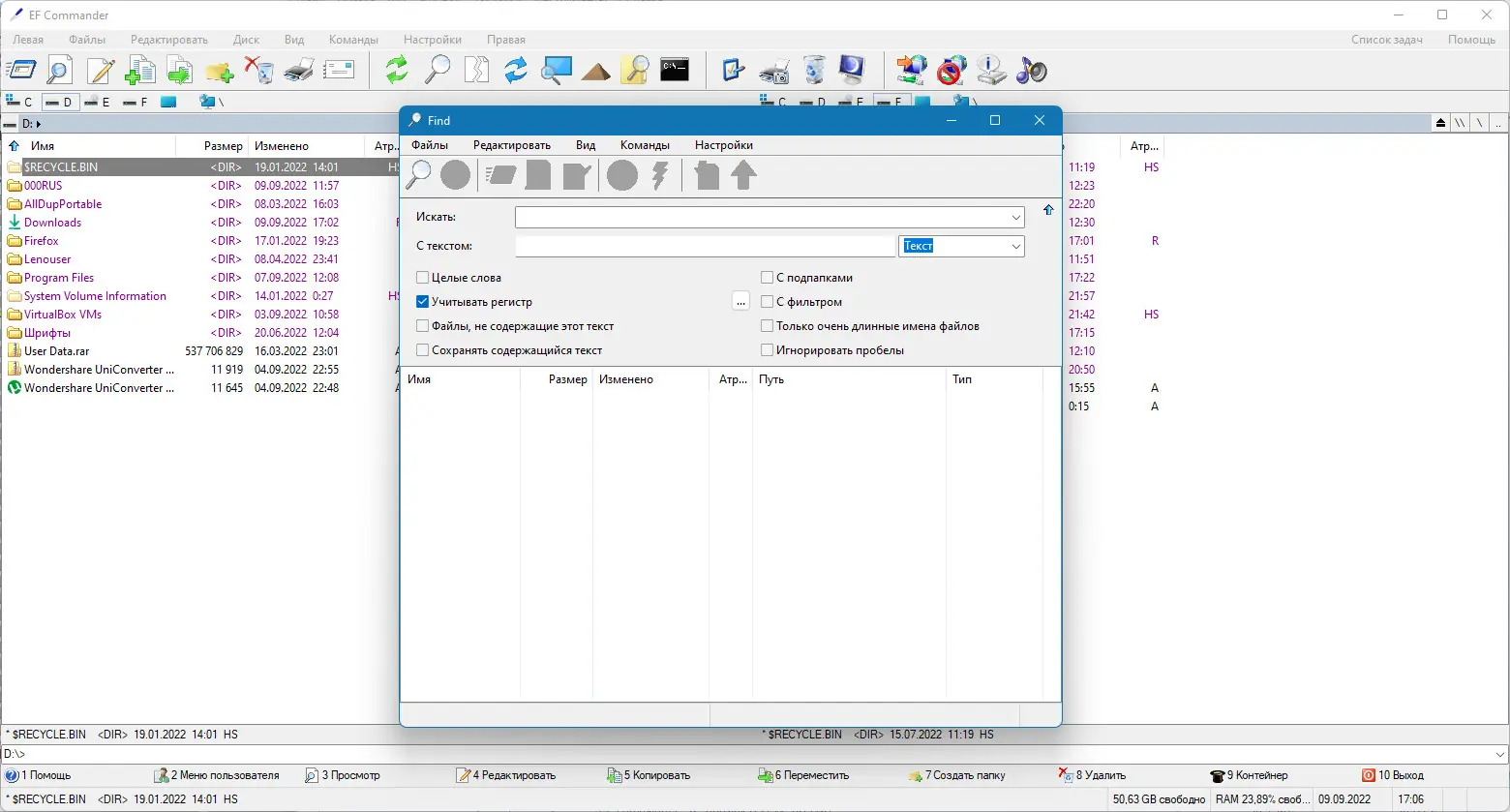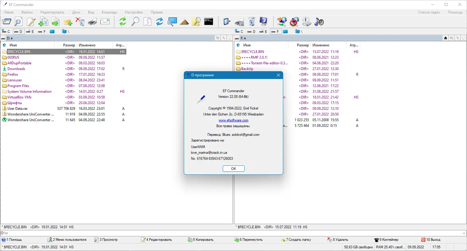 Использование EF Commander не требует специальных навыков. После запуска отображаются две панели, между которыми можно быстро переключаться и копировать файлы с помощью горячих клавиш или контекстного меню. Все операции, такие как копирование, перемещение, удаление, выполняются в фоновом режиме благодаря 32-битной многопоточности. Встроенный текстовый и HEX-редактор позволяют редактировать файлы напрямую, не выходя из интерфейса. Для работы с архивами не нужно устанавливать сторонние утилиты — все действия выполняются встроенным модулем. Пользователь может синхронизировать папки, проверять контрольные суммы в форматах SFV, MD5 и SHA1, а также записывать данные на CD и DVD при наличии Nero Burning ROM. Поддержка внешних просмотрщиков, таких как XnView и IrfanView, расширяет возможности по работе с изображениями.