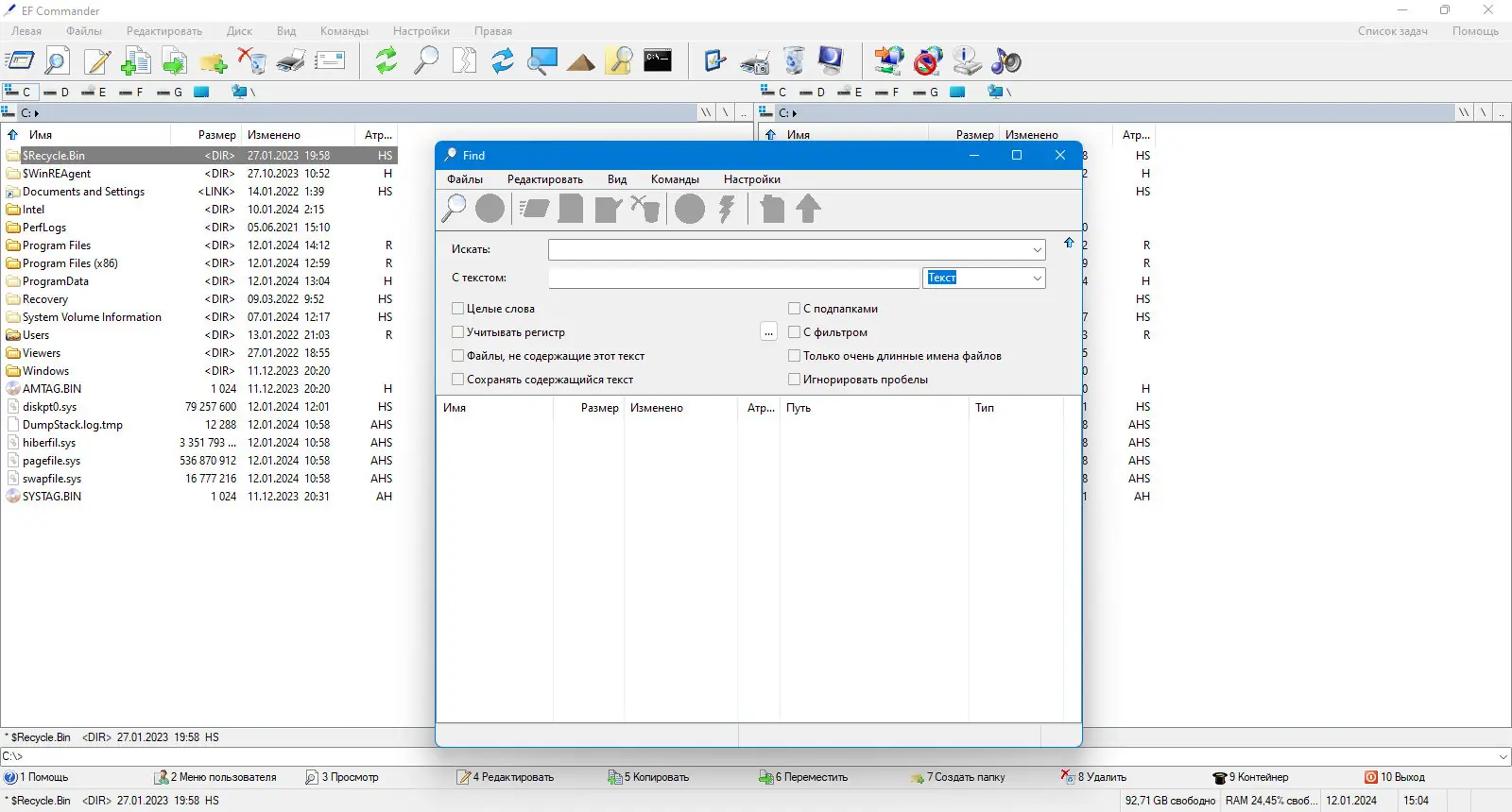 EF Commander представляет собой продвинутый файловый менеджер, разработанный для эффективного управления файловой системой. Он выполнен в классическом двухпанельном стиле, напоминающем Total Commander, но предлагает более широкий набор встроенных функций и гибкую настройку интерфейса. Программа ориентирована как на обычных пользователей, так и на продвинутых, которым важна скорость, точность и расширенные возможности при работе с файлами.