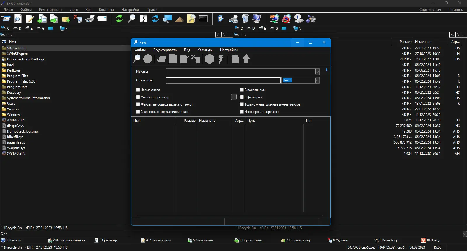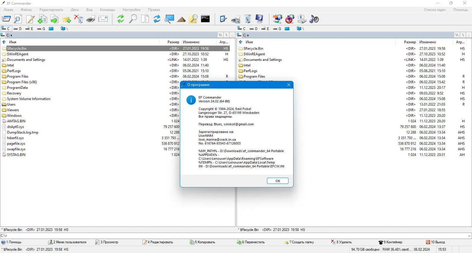 EF Commander представляет собой современный файловый менеджер с двухоконным интерфейсом, вдохновлённым классическими решениями, такими как Total Commander. Он сочетает в себе простоту управления с глубокой функциональностью, позволяя эффективно работать с файлами, архивами, носителями и сетевыми соединениями. Программа оптимизирована для стабильной работы даже на системах со слабыми характеристиками, не нагружая процессор и оперативную память.